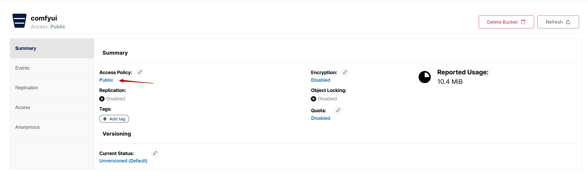 访问策略设置为public